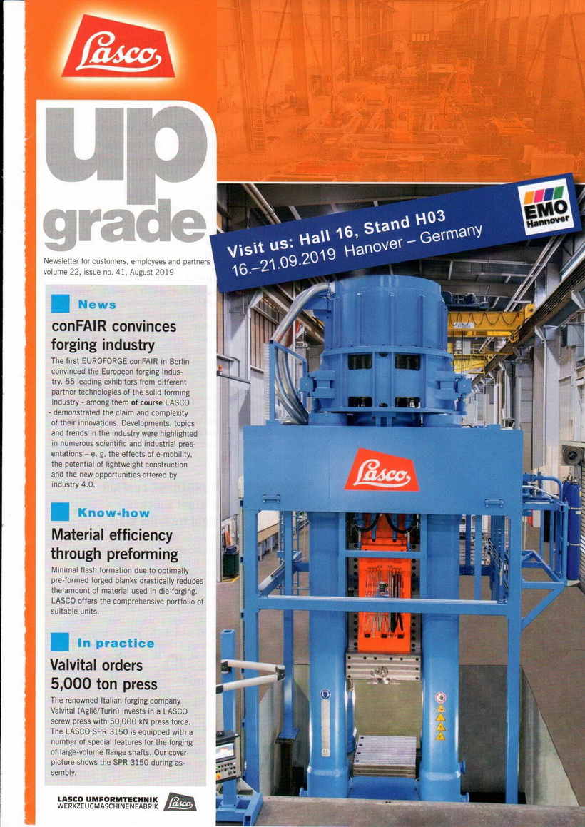 LASCO公司是液压动力应用于锻造行业的领头兵,其生产的各种液压机可以实现各种锻造和冲压成形。生产的电镦设备已处于世界一流。