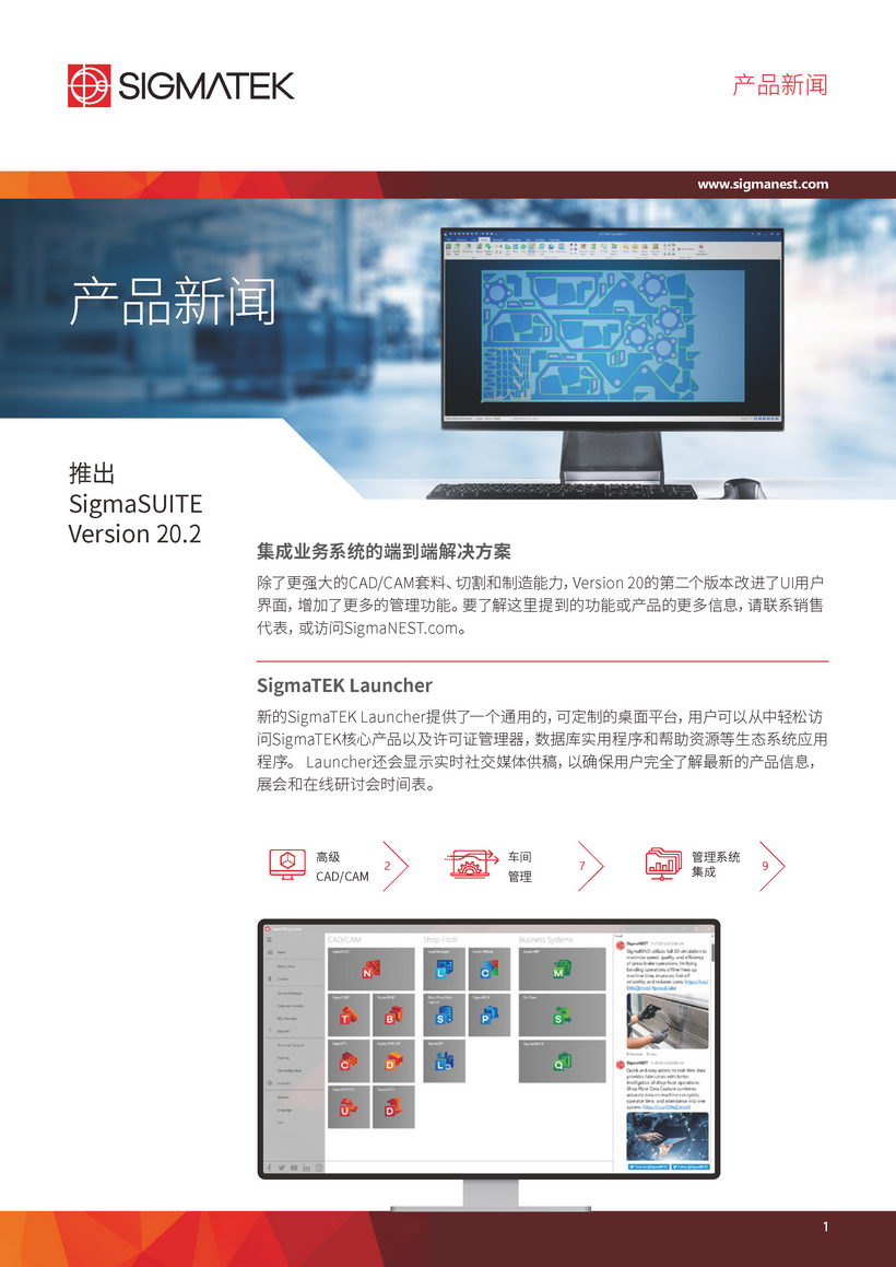SigmaTEK公司总部位于美国,在欧洲,亚洲,澳大利亚,非洲和南美设有分支机构,是创新的端到端CAD / CAM软件解决方案的全球领先供应商。我们以客户为中心,由全球咨询专家和经验丰富的产品专家团队提供支持,我们以行业为中心的产品组合可帮助制造商通过优化材料利用率,机器路径优化,人力和数据管理来提高投资回报率。我们的产品套件涵盖了整个制造流程: 从报价到发货,包括与广泛的业务系统的集成以及对所有主要的激光,水切割,火焰,等离子,冲床,铣床,裁刀,折弯机和管切机进行编程的独特能力
