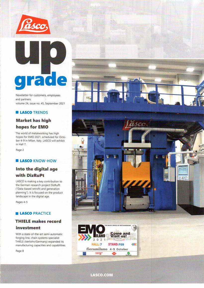 LASCO公司是液压动力应用于锻造行业的领头兵,其生产的各种液压机可以实现各种锻造和冲压成形。生产的电镦设备已处于世界一流。