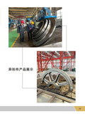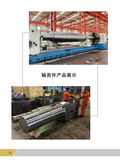 以上主力锻造设备可锻造如下大中型自由锻件:两端夹持可最大拔长锻造20米轴类锻件,镦粗、扩孔锻造5米饼类、圈类锻件,穿芯棒拔长锻造9米筒类锻件,可实现年产各类自由锻件12万吨的最大产能。产品主要面向水(火)电、汽轮机、汽轮发电机、工业透平、管模、船舶、石化、冶金、压力容器等诸多领域。