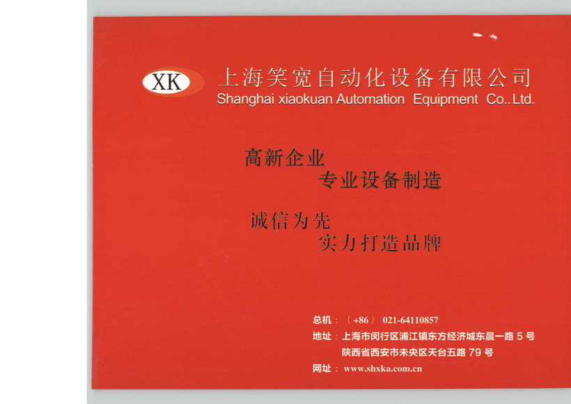 上海笑宽自动化设备有限公司位于上海市浦江东方经济城。公司上海工厂现有1000多平米装配厂房,西安工厂有3000多平米机械加工厂房,加工设备齐全(数控激光切割机1台、数控加工中心5台、数控车床3台、数控磨床2台、铣床3台、普通车床1台、线切割2台、氩弧焊、气保焊、手工焊、油漆喷涂等)。公司是专业从事标准和非标自动化设备的设计、开发、制造、销售、服务为一体的专业、现代化高新技术企业。公司自2006年创建以来致力于为各类工业企业提供整套自动化解决方案和自动化产品集成;以及自动化技术咨询和优化控制方案等。公司着重于技术型人才的培养与提高,在不断的实践与完善中打造出了一支经验丰富、技术过硬、团结奋进的自动化技术团队;推行人性化的考核和管理制度,同时培养员工正确的价值观和行为规范;严格执行6S体系推进精细化生产管理;能及时有效的为客户提供自控系统的集成、安装、调试等一系列的服务和强大的技术支持。公司着力于机械加工、装配领域自动化上下料系统;料仓、料道、料筐中转储料输送系统;在线检测、分拣、统计、追溯系统的智能物流线;线性模组滑台、大截面铝型材的设计、制造和销售。经过长期的不懈努力,目前公司产品销往全国各地,得到广大客户的好评。公司始终坚持质量第一的理念,力求精益求精,为客户打造更专业、更高效的自动化产品。