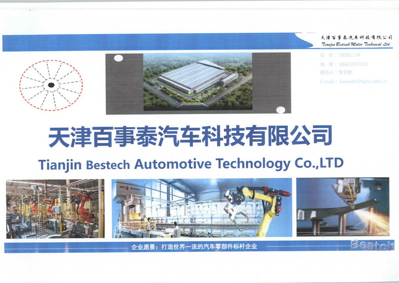 天津百事泰汽车科技有限公司,交通便利,位于天津空港经济区,距离天津机场3公里,紧邻京津塘高速,注册资金5000万元;占地面积5800平方米,一期总设备投资3500万元,主营业务为热冲压零件生产、产品研发。