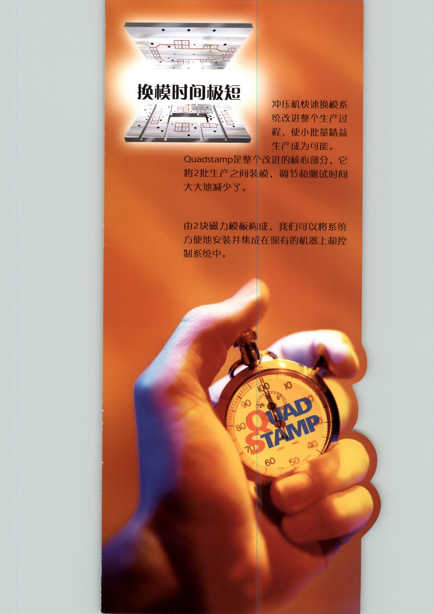 泰磁快速换模系统作为一个完整的解决方案用来满足先进的制造过程中小批量、多类别生产的JIT(实时生产)和SMED(快速更换)的要求。 采用完美的“双磁极对流”技术,具有磁场集中,磁吸附力强,不磁化设备,克服间隙能力强,磁穿透高度可控等优点。将电控永磁的磁力的应用发回到极致。 意大利泰磁公司Tecnomagnete S.p.A.始建于1972年,是全球电控永磁产品领域中的领先公司,发明了一系列革命性创新产品,设计、制造全系列电控永磁夹持及吊重系统。产品包括:注塑机快速换模系统、铣削、磨削、立车、铁轨加工用电控永磁夹盘、手动永磁吊重器及重型电控永磁吊重设备(用于成卷钢带、大型钢板等的吊运)等。