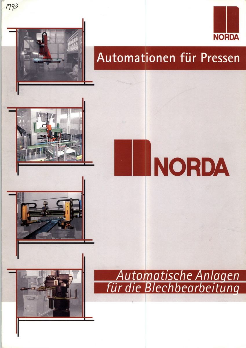 NORDA S.p.A. si propone come fornitore di Sistemi completi per l’Industria della Deformazione, integrando macchine, tecnologie e know-how più avanzati, al fine di ottenere per ogni Cliente il risultato adatto alle specifiche esigenze e garantire i massimi livelli di competitività nel Mercato globale.Nel 1970, all’inizio dell’era dell’Automazione, la NORDA S.p.A. ha iniziato a produrre automazioni per lo stampaggio della lamiera, conquistando subito un posto di prestigio nel Mercato. Il prodotto innovativo ed affidabile, la genialità e la comprensione dei problemi, la tecnologia d’avanguardia e le soluzioni flessibili adatte ad ogni situazione produttiva, hanno permesso a NORDA S.p.A. di divenire in tutto il mondo un riferimento nel settore dell’automazione industriale.