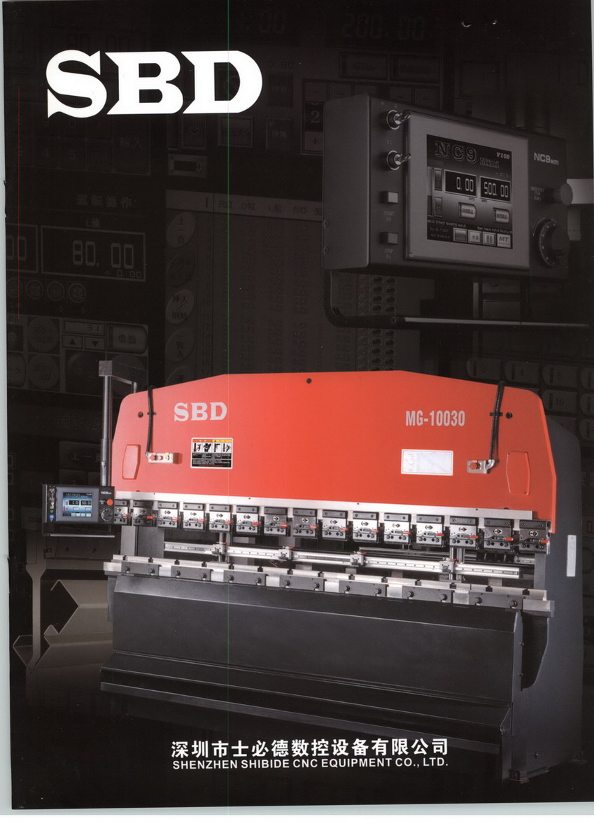 深圳市士必德机床工具有限公司成立于1997年,是集技术研发、生产与销售为一体工贸企业。1998年成为深圳市机械行业协会会员企业单位,是目前深圳市最大的机械设备供应商。经营15年来,已向市场用户提供近10000多台各类金属切削设备。从2007年开始,引进日本技术,自主研发生产数控钣金设备,并于2008年将研发的高精密数控折弯机进行产业化。2009年投入市场销售品牌为“ ”现主要有MG–10030二轴数控折弯机、 MG– 5012 二轴数控折弯机、MMG–5012三轴数控折弯机、SM–8450二轴伺服折弯机。自主研发生产品牌“SBD”型号有VMC-650,VMC-850,VMC-1060,VMC-1270数控加工中心,XK713数控铣床。