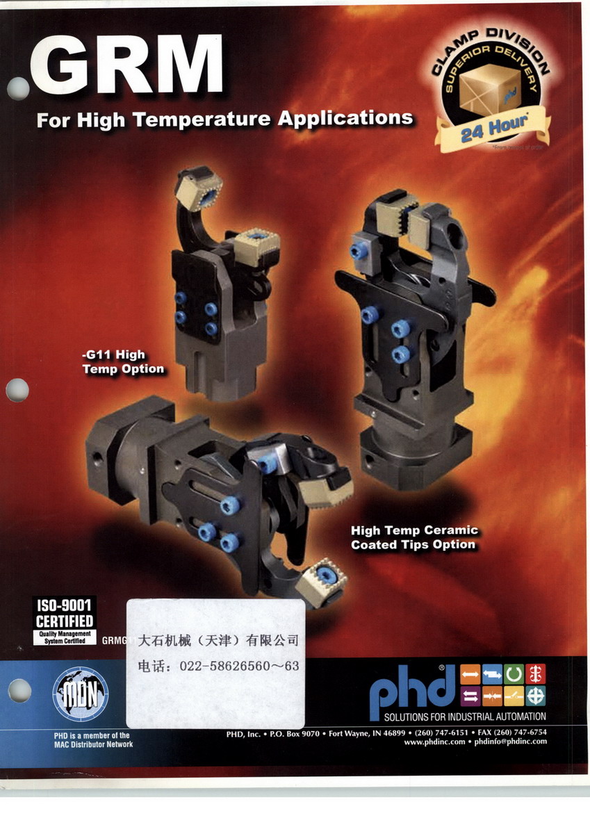 在中国的总代理,并提供工程设计及售后服务。同时,还代理美国PHD气动夹钳、美