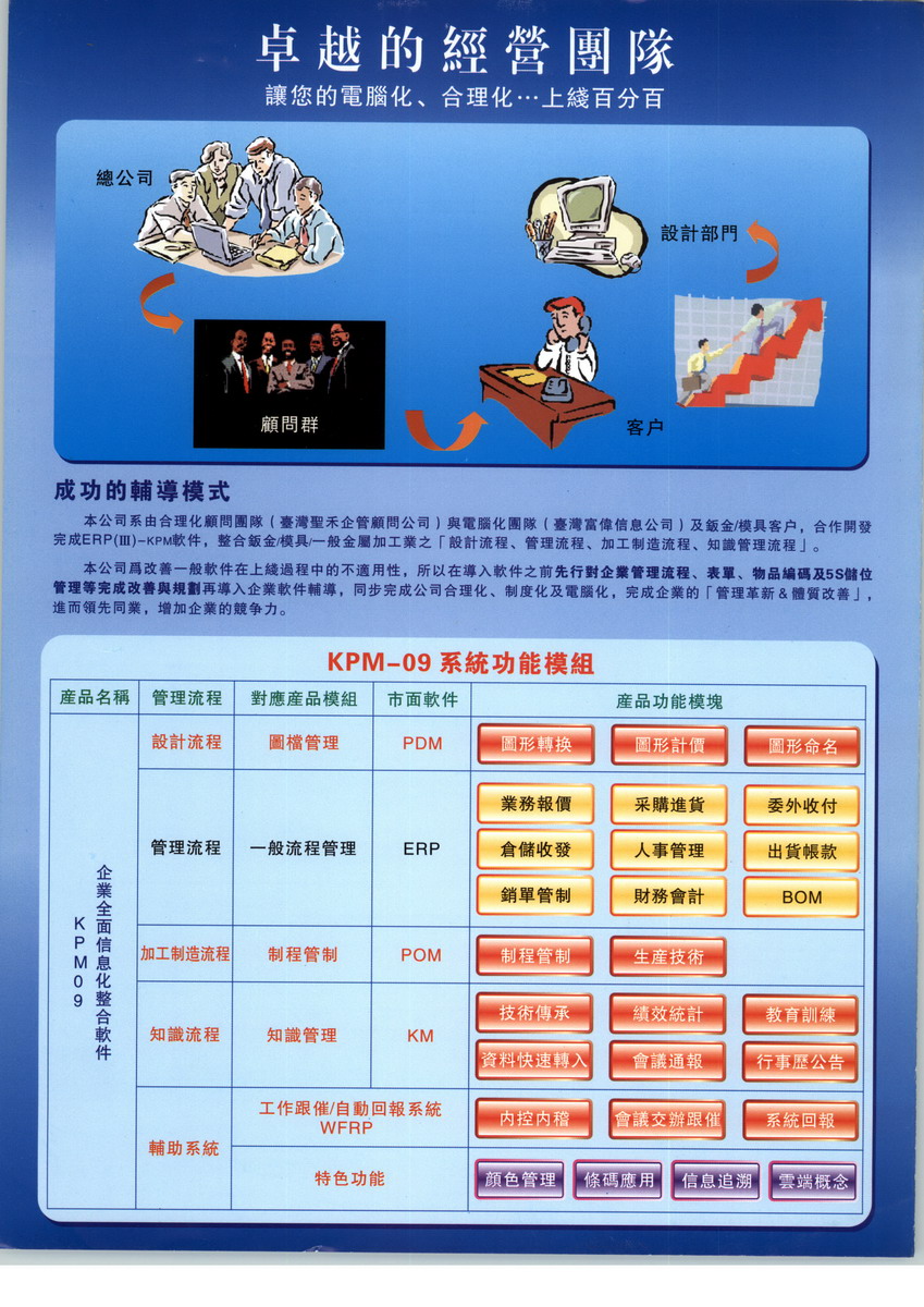 东莞百兆软件科技有限公司主要经营“模具管理软件,ERP软件,PDM软件,KM软件,制程管理软件,钣金管理软件,合理化,企业管理咨询,”等产品。公司尊崇“踏实、拼搏、责任的企业精神,并以诚信、共赢、开创经营理念,创造良好的企业环境,以全新的管理模式,完善的技术,周到的服务,卓越的品质为生存根本,我们始终坚持用户至上 用心服务于客户,坚持用自己的服务去打动客户。