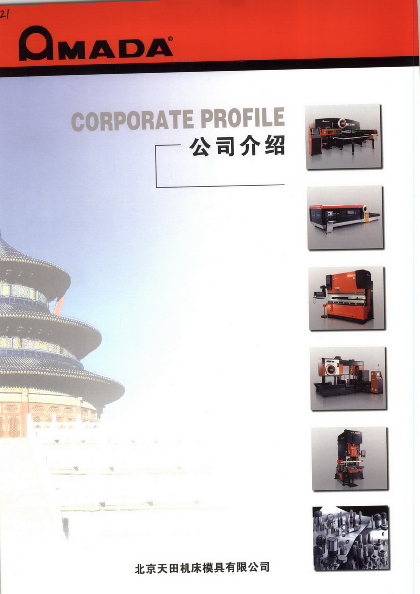 株式会社天田(AMADA CO.,LTD)是一个专业生产钣金加工机械的大型跨国公司,从市场规模、产品结构、产品技术性能以及综合的经营管理体系等方面,逐步形成了 一个集产品开发、设计、制造、教育培训售后服务为一体并具备营销网络的集团性上市公司。公司在世界各大洲设有83个分支机构,产品营销全球100多个国家和地区,其生产钣金加工机械的品种多 (达近千品种)性能之优,技术之先进,为世界钣金加工机械的行业之首。公司在九十年代开发制造的21世 纪智能化自动钣金加工中心,为世界钣金行业的智能化加工开创了一个先例,得到了日本最高的技术发明奖励。 AMADA公司的产品之所以能受到世界各国用户的欢迎和青睐,是因为它具有全面合理的机械结构;能给用户提供最好的品质保障它具有高效无公害的运行特征,能给用户创造利益,提供放心使用的保障;它具有仿镇自动化的先进技术能给用户提供最完美、最简化的加工保障,从而使AMADA的产品遍及全球,公司年销售达到2000亿日元。