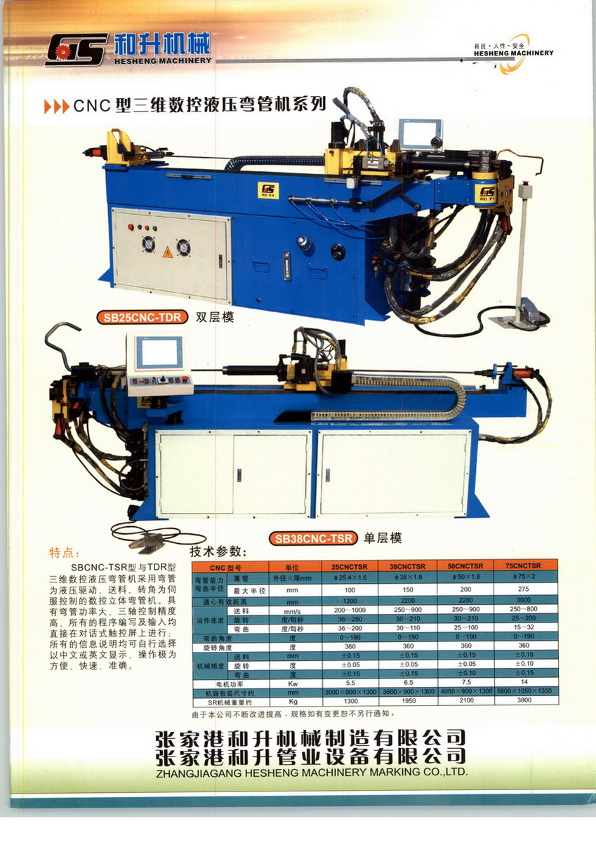 张家港和升机械制造有限公司,专业制造生产弯管机、金属圆锯机、管端成型机、自动焊接机等成套管类加工设备近31年。公司占地二万多平方米,建筑面积一万五千平方米,公司技术力量雄厚,生产经验丰富,系列产品已通过ISO9001:2000质量管理体系认证。