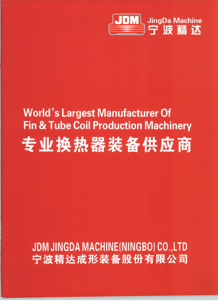 JDM Jingda Machines (Ningbo) Co. Ltd was founded in 1990. We are currently the leading manufacturer of machinery for both the mechanically expanded and brazed micro channel heat exchanger industry, globally. Our goals and long-term commitment is to constantly evolve our heat exchanger equipment, using research and development skills and vast production capacity. We operate in all areas of air conditioning, Radiator, Heater core, Charge air coolers, Condensers, Evaporators for Truck and Car、Complex range of Fin machines、Fin Presses、Core Builders 、Tube Hairpin Benders、Vertical and Horizontal Expanders、Straight tube cut off、High speed cut off 、Return benders 、Ring loading、Full range of mechanical presses. We have a stringent quality control system and all non-standard machine part is processed by ourselves.We have more than 200 pieces of production equipment and also a R&D team of close to 100 people. We can provide full range of solutions in heat exchanger domain, through protracted and unremitting efforts over 20 years of experience. We have supplied our equipment all over the world totaling more than 40 countries.We provide an energy saving, environmental protective, high efficiency, safety and precision service to the heat exchanger marketplace and contribute our strength to provide you with a “Cool world”