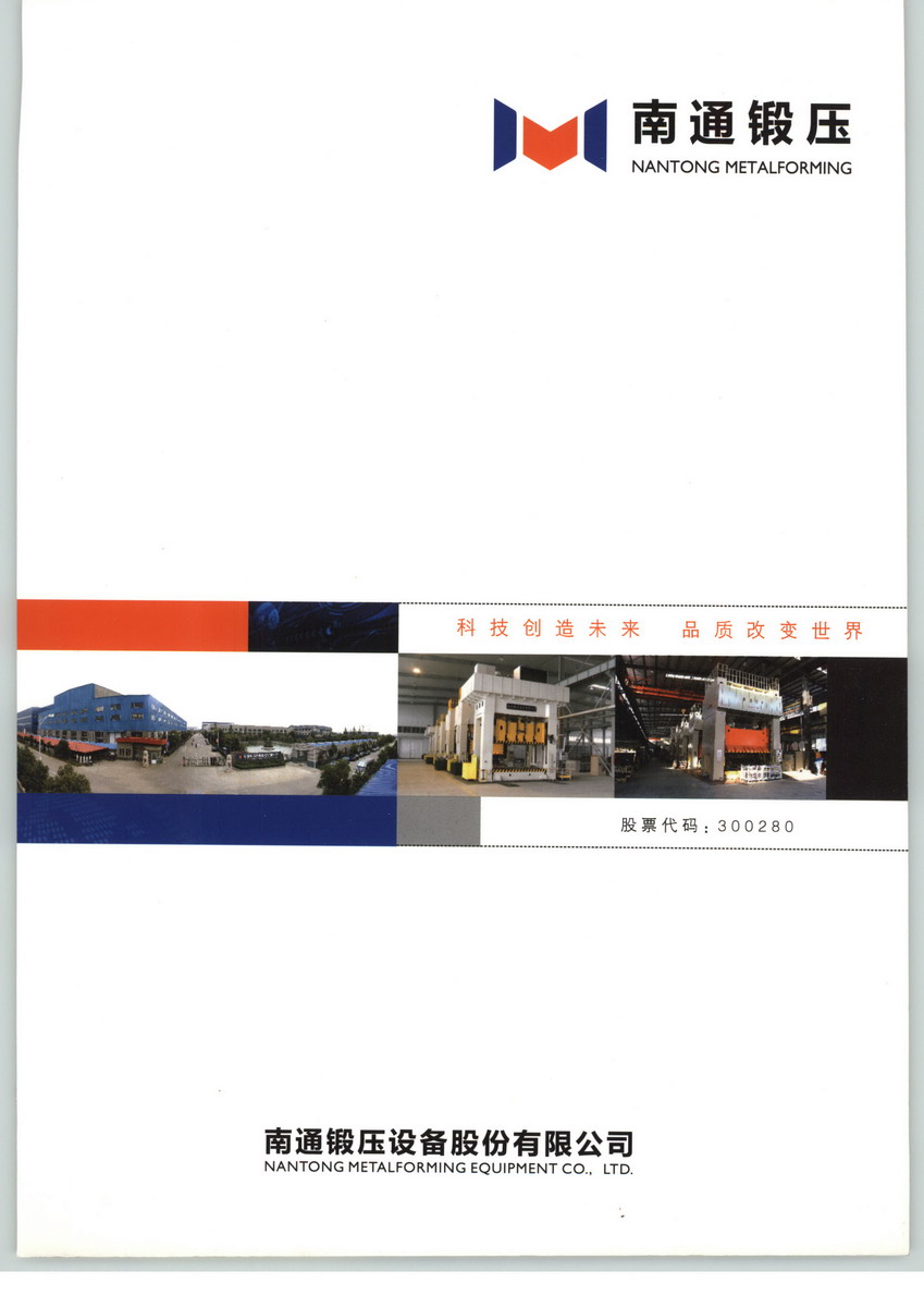 南通锻压设备股份有限公司是专业从事锻压设备的研发、生产和销售,并为客户提供个性化、多样化、系统化金属及非金属成形解决方案的高新技术企业。公司系国内金属成形机床行业重点骨干企业、全国优秀民营科技企业、国家火炬计划重点承担单位、江苏省创新型企业和高成长型中小企业、江苏省用户满意服务单位。2011年12月29日,公司股票在深圳证券交易所创业板挂牌上市(股票简称:南通锻压,股票代码:300280)。公司主要产品为各类液压机、机械压力机等数十个规格、上百个品种的锻压设备,拥有数十项授权专利、软件著作权,其中多个产品被科技部列入国家火炬计划项目、国家科技重大专项、国家重点新产品计划、江苏省重大科技成果转化专项资金项目、江苏省高新技术产品等,大型高性能框架精密成形液压机通过省经信委新产品新技术鉴定。公司产品广泛用于汽车、航空航天、核电、军工、能源、化工、船舶等诸多行业和领域,畅销国内三十多个省、市、区,并出口多个国家和地区,具有广泛、稳定的客户基础,享有较高的市场知名度和美誉度。“庆华”商标被授予“江苏省著名商标”称号,“庆华”牌液压机被认定为江苏名牌产品。
