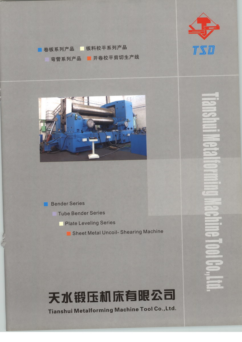 天水锻压机床(集团)有限公司位于中国历史文化名城——被海内外华人誉为“羲皇故里”的中国甘肃省天水市麦积区。公司始建于1966年,前身为天水锻压机床厂,是国家“三·五”期间投资建设的重点三线企业,隶属原第一机械工业部,是六十年代国家投资建设的大二型国家重点骨干企业,享有外贸自营权,是国家机电产品出口基地,2011年改制为国有控股天水锻压机床(集团)有限公司。公司以生产剪板机、折弯机、液压机、卷板机和JCOE大口径直缝埋弧焊管成套设备为主,有五大类、20个系列、200多种规格,产品广泛运用于机械制造、冶金、石化、电力、风力发电、航空航天、国防军工、汽车、铁路、船舶、石油天然气输送等领域。主导产品为剪板机、折弯机和制管成套设备,其中石油、天然气制管成套设备处于国际先进水平,大型剪、折机床技术处于国内领先水平。所产制管设备占国内市场的90%以上,大型剪折设备占国内市场的40%以上,是国家制管设备的研发制造基地和出口基地,也是国内唯一一家能生产大型数控剪切中心和全套大口径直缝埋弧焊管生产线的企业。公司占地面积31万平方米,其中生产建筑面积6.3万平方米。主要生产设备360多台(套),其中大型、精密设备约40台(套),有进口的φ220大型数显落地镗铣床、2500×8000大型数显龙门铣床、1000×10000大型平面磨床、数控加工中心和数控车床等。公司注册商标“TSD”牌,被国家工商总局认定为“中国驰名商标”。先后承担了“国家100项高技术产业化示范工程”项目,“国家863计划”项目,“国家火炬计划”项目等。荣获国家、省、市级科技进步奖42项,获得国家发明专利和实用新型专利86项。公司是中国机床工具协会理事单位,中国机床工具协会锻压分会理事单位,中国工程学会理事单位和全国锻压机械标准化技术委员会委员单位。公司坚持“质量第一、用户至上”的原则、严格履行产品质量承诺,为用户提供优质满意的产品和服务,同时愿与各界朋友携手共进、共谋发展。