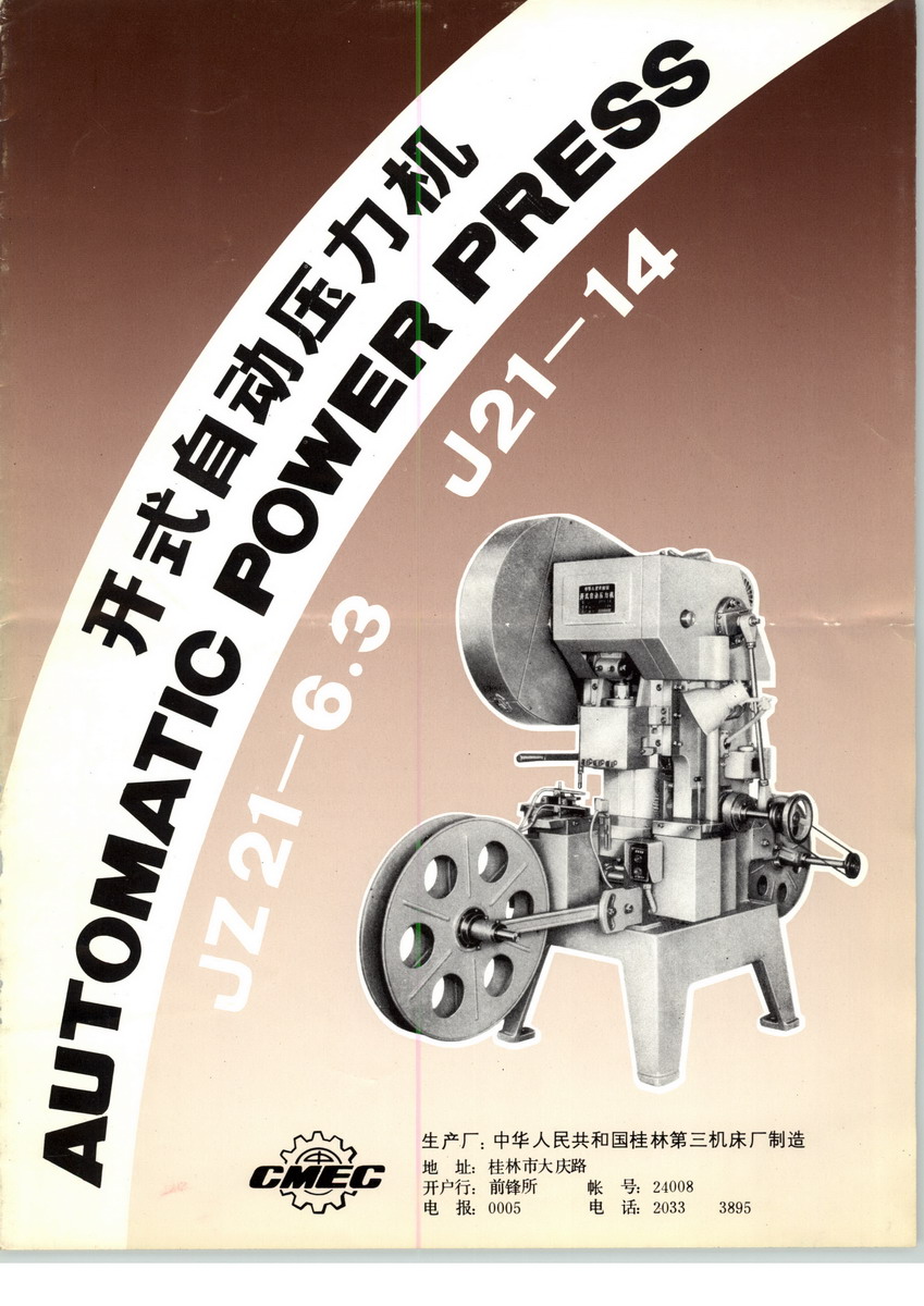 桂林第三机床厂主营开式自动压力机。