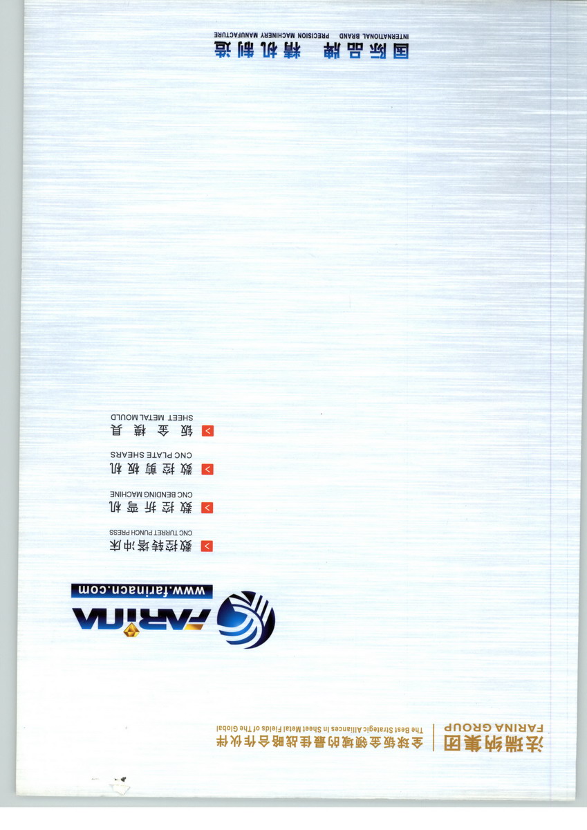 法瑞纳集团是目前世界上最专业的数控转塔冲床、数控折弯机、数控剪板机制造商之一。其制造的设备集多年的生产经验和当今先进的制造技术于一身,把先进的设计理念和不断革新的技术融入在制造机械设备过程中。其产品的安全可靠,性能优良,并以它独特的专有技术,先进的加工手段,精湛的工艺,完美的加工效果在世界上享有很高的知名度。 金力锻压机床有限公司系技术合作企业,是专业制造数控转塔冲床、数控折弯机、数控剪板机等钣金设备及模具配件的供应商和服务商,公司拥有雄厚的技术力量和先进的生产、检测设备和一批具备丰富专业知识的工程技术人员,同时拥有一群具有优良业务素质的销售和售后服务人员,致力于为用户提供专业的产品以及细致的服务。 我们的愿景:全球钣金领域的最佳战略合作伙伴! 我们的目标:开百年老店,树百年品牌! 我们的使命:为全球钣金用户提供优质的设备和服务!