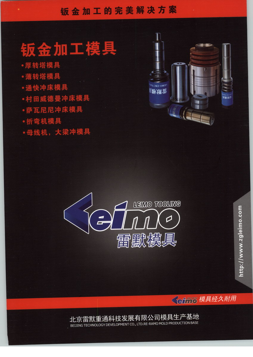 公司坐落于北京市中关村科技园联东U谷高新工业区,紧邻国家级经济开发区—亦庄,地理位置优越,交通方便,是从事模具设计开发和加工的专业企业,在数控冲模设计及加工方面具有十余年的生产经验,拥有一流的专业技术人才团队。公司现有国际化高档厂房3000多平方米。有台湾CNC加工中心、台湾CNC铣床、CNC线切割机、CNC电火花机、CNC车床及各类高级CNC磨床等通用加工设备几十台套,确保加工生产的质量和交货期。使用CAD/CAM技术设计、执行ISO9001体系标准,公司围绕着模具设计和制造核心技术,以数字网络技术为基础,在完善的局域网络支持下,建立了覆盖公司全体部门、所有工作流程的计算机信息管理系统。实现了产品从订购、订单管理、原料采购、设计工艺,加工、质量检验、直至成品出库所有环节的信息化、科学化管理。公司产品主要技术指标均达到了国际选进水平。经过多年努力,公司特别是在数控转塔冲床专用模具、数控剪折模具方面占据国内领先地位。我公司生产的数控转塔冲模﹑折弯机模具﹑汽车大梁冲模具﹑母线机模具专业配套AMADA、FINN-POWER、SIRIPPLT、KOMATSU、LVD、TRUMPF、WIEDEMANN、EUROMAC、TAILIFT、LFK、HACO、BOSCHERT、江苏金方圆、济南捷迈、天水锻压、江苏亚威等知名生产企业。主要客户覆盖全国二十多个省市,产品在国内市场的占有率名列前茅。部分产品已批量随江苏金方圆数控机床有限公司、台历福数控机床有限公司、济南捷迈数控机床有限公司、天水锻压机床有限公司配套销往全球各地。公司采用数字管理平台,建立了雷默模具协同管理平台,其中包括生产计划管理、模具设地数据管理等。信息化建设提高了技术准备效率及设备利用率,对企业的生产效率有大幅度提高。雷默模具将参与模具行业信息化制造网络的建立,并通过信息化平台的建立共享,进一步提高企业产品的设计制造能力。公司信奉“以人为本,诚信至上”的宗旨,秉着对顾客、对社会、对员工负责的宗旨,逐步提高质量、环境、安全管理水平。雷默模具希望与您携手共进,创造更辉煌的明天!